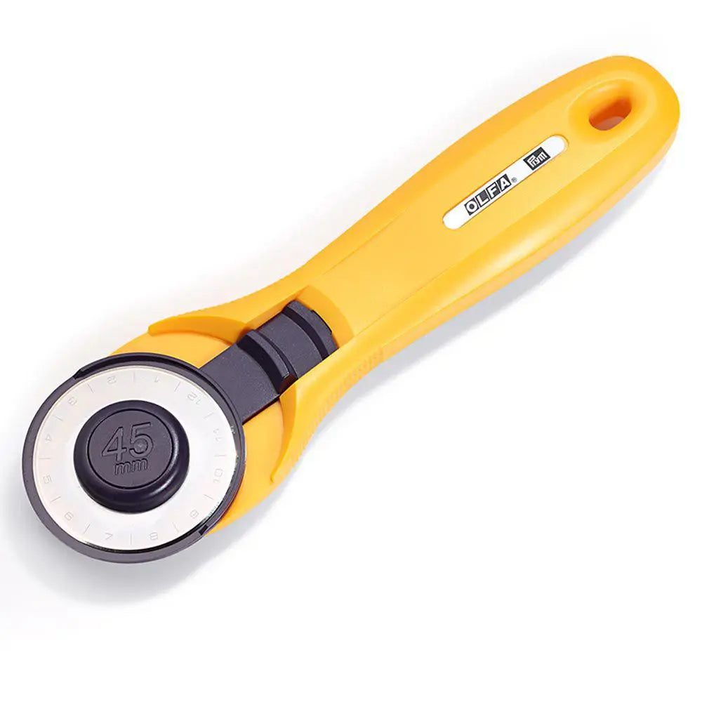 O Cortador Circular Maxi 45 mm Prym / Olfa é uma ferramenta robusta e indispensável para quem trabalha com patchwork, quilting e costura criativa. Graças à sua lâmina afiada de 45 mm, ele corta com facilidade de 4 a 8 camadas de tecido de uma só vez, mantendo precisão e suavidade nos movimentos.
