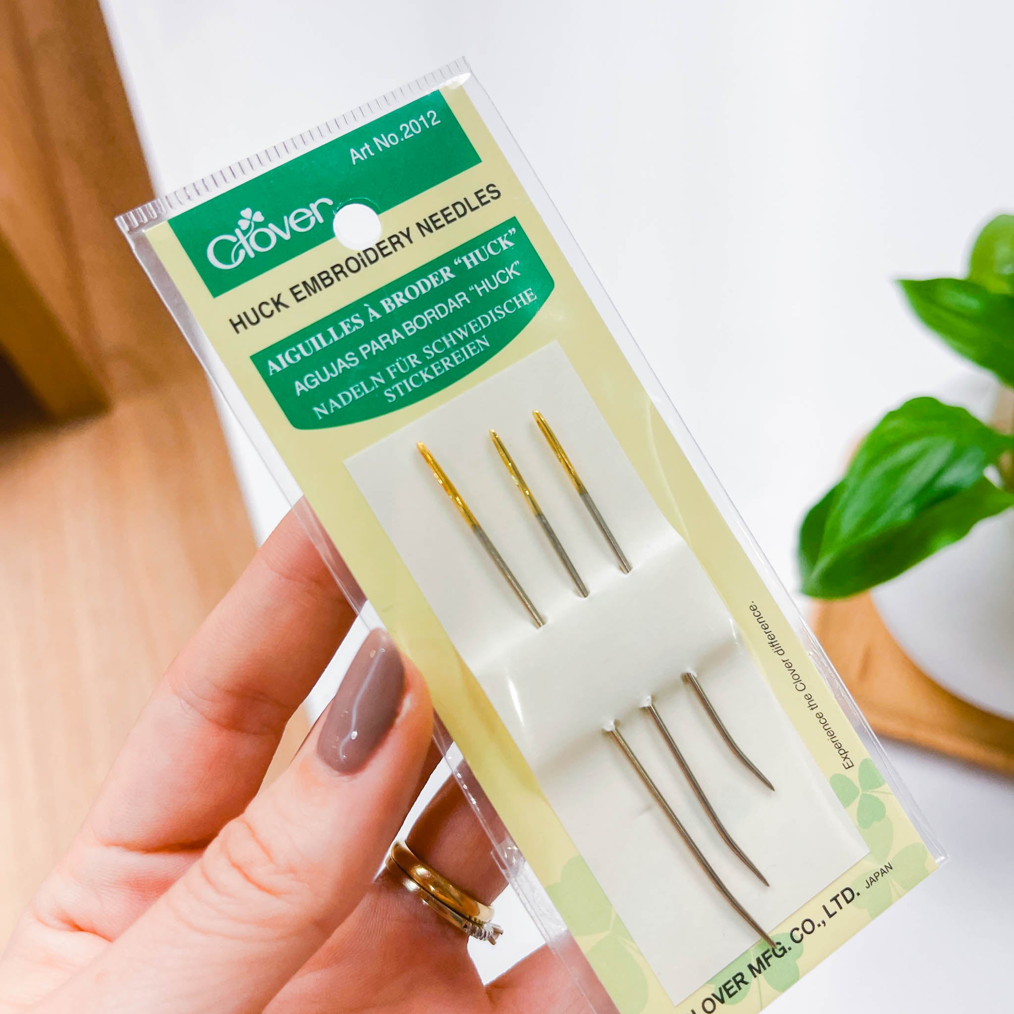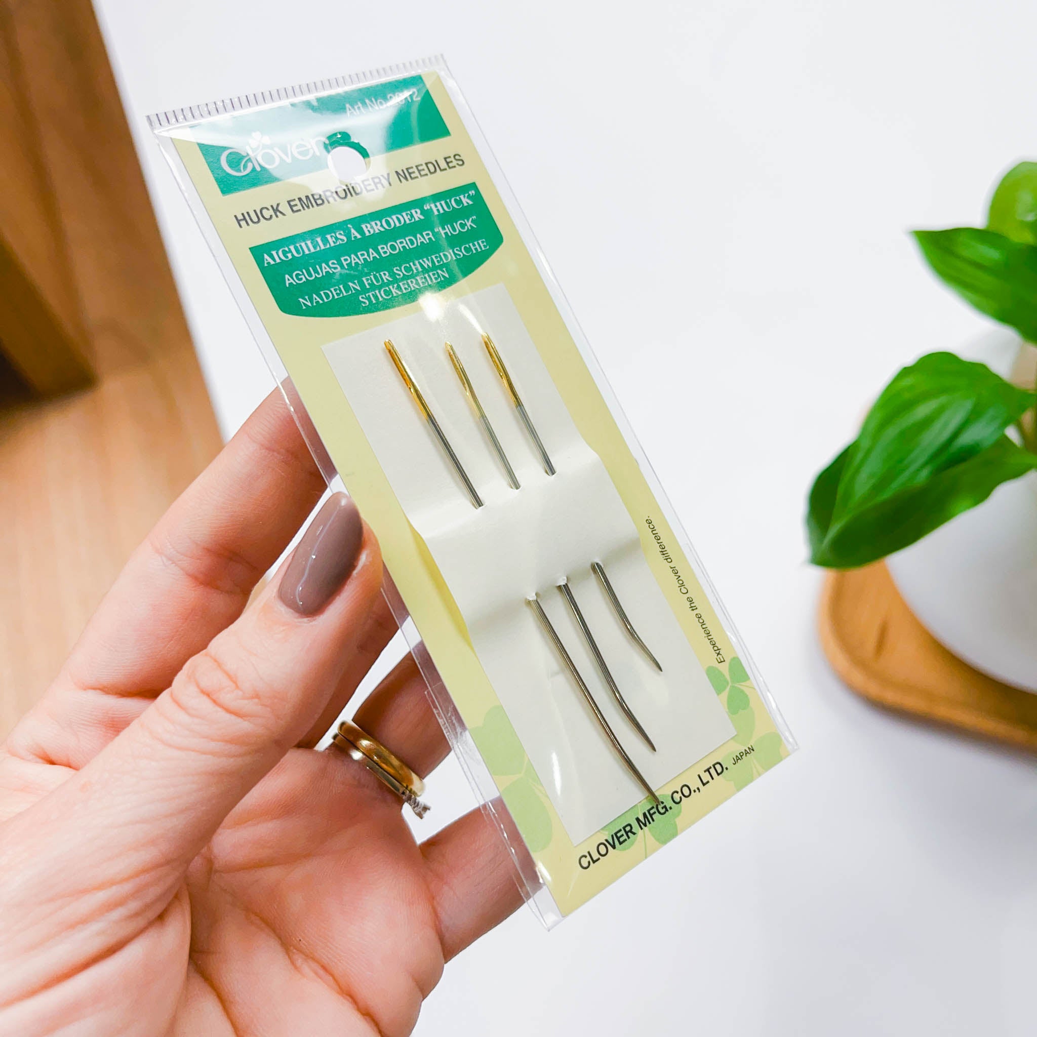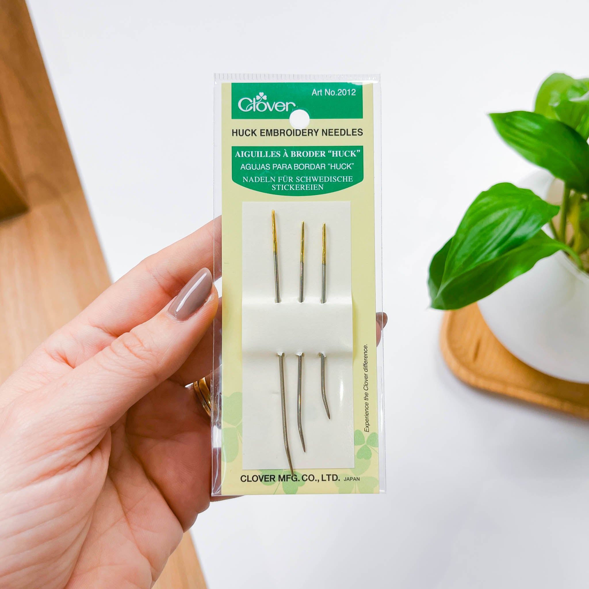 As Agulhas Clover Huck são especiais para trabalhos de bordado Huck, bordado sueco e técnicas semelhantes. Com ponta curva, elas deslizam sob os fios do tecido sem perfurá-lo, facilitando a execução de pontos decorativos largos e simétricos.